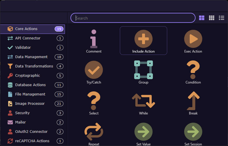 In Tree view, right click to display contextual menu and select Add Action. The panel does not display Favorites.