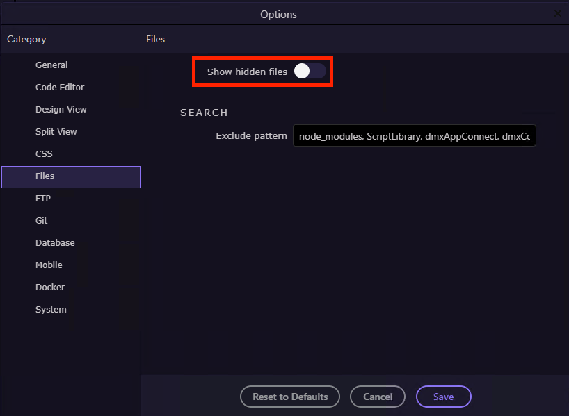 I request Wappler team to please add an option (while keeping the right-click option) in Wappler project settings itself to toggle show/hide status for hidden files & folders which would apply to all projects.