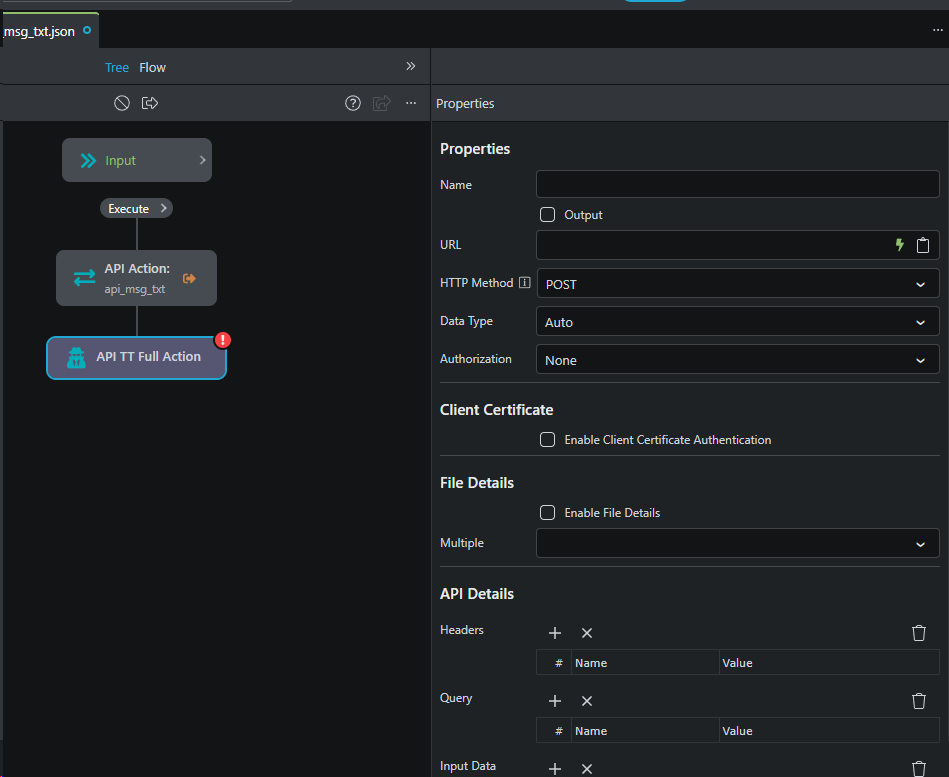 I have a custom API Action to send FormData and Client Authentication via digital certificate.