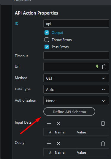 I would like to add the "Define API Schema" option, similar to the "API Action" option that already exists by default.