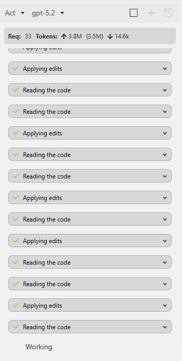 I observe the following behavior. Wappler AI created the page. After that, it goes into some kind of cycle of reading the code and applying the changes. However, no changes are visible. The page remains the same, but the cycle continues. This not only wastes time, but also money, as Wappler constantly sends code to chat-gpt. I have observed similar behavior when using DeepSeek. This did not happen with Claude, probably because he immediately went into error due to the limit of tokens per minute.