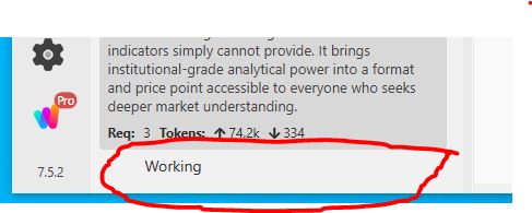 I uploaded a fairly large (22 Kb) query to the AI Manager (Claude Opus 4.5). The window for tracking his actions has been reduced to 1 line. You can see it in the photo. I can't zoom in, it's not convenient.