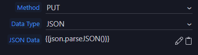 I tried using the Set Value action to add JSON in text format and then using it in the JSON Data field of the API Action without success.