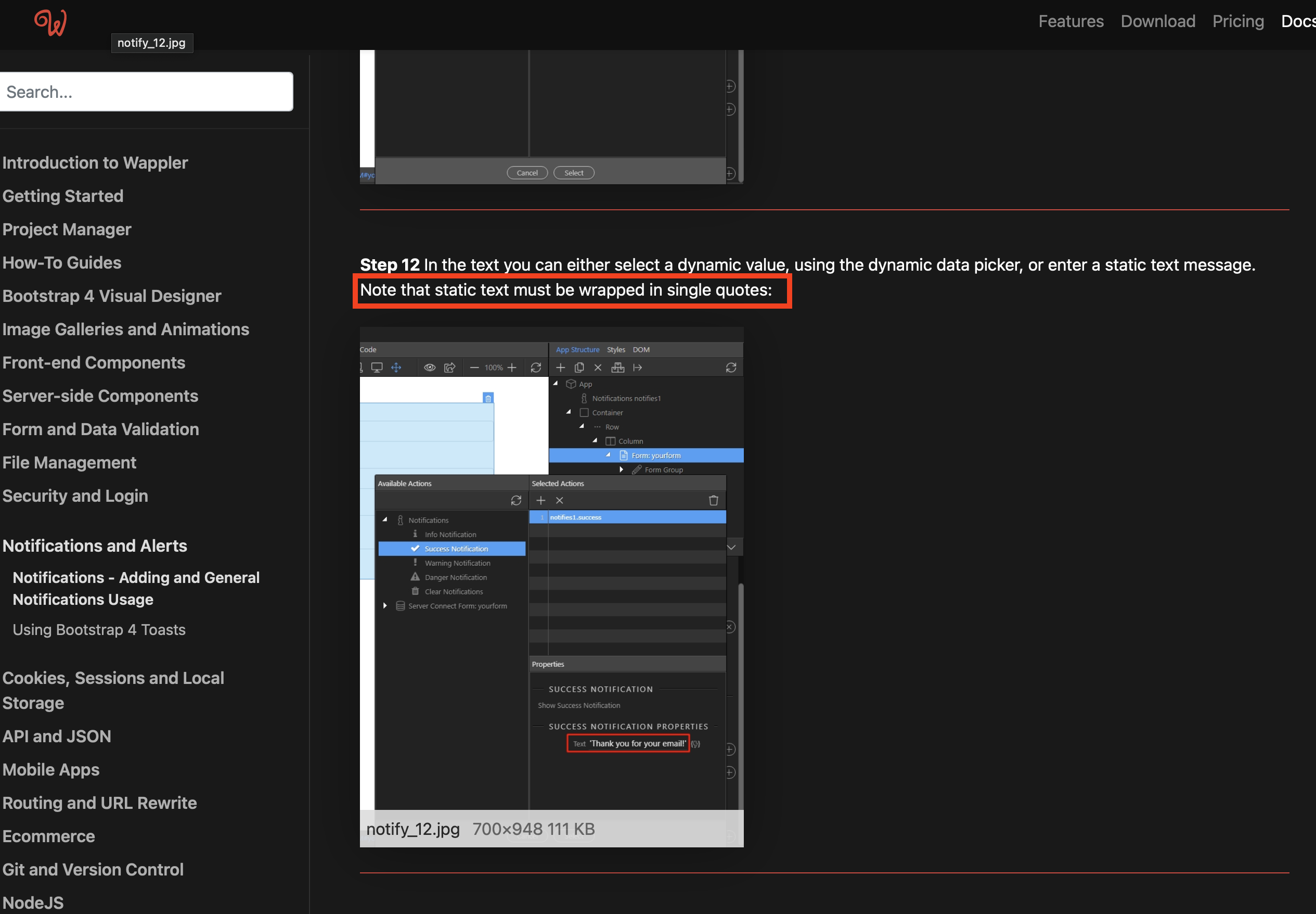 I often seen in tutorials here to put your notification text inside 'my notification here' but it looks ugly and awkward at best in a user interface