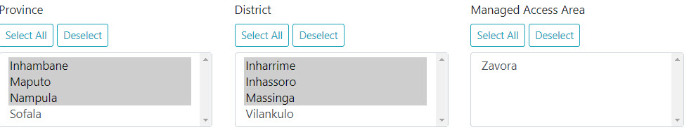 Here I select multiple values but nothing changes - there should be 12 values in the third field.