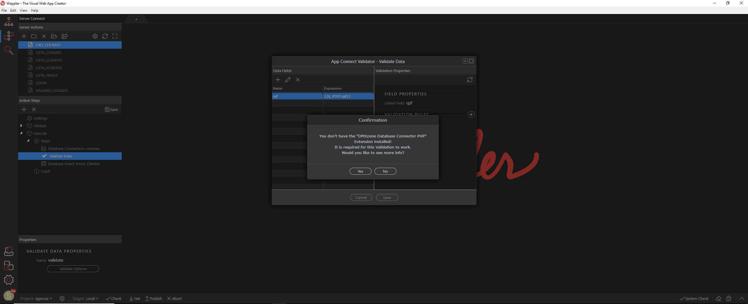 I am receiving the following message for “Validate Data => Database” : You don’t have the “DMXzone Database Connector PHP” extension installed. It do not work in DMXzone/DW too.