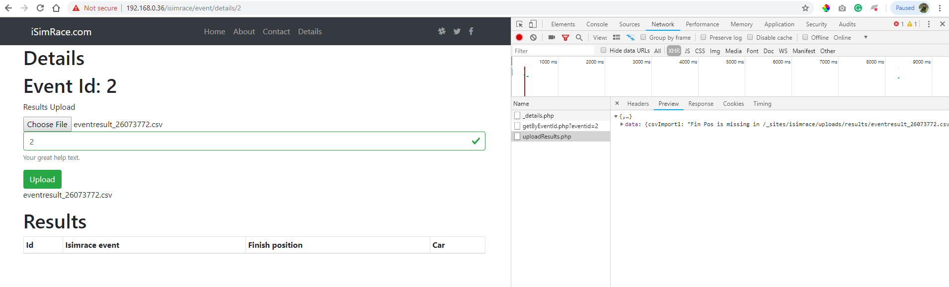Im assuming since the csv has two header lines the repeat gets consused and hince why it says cant find “Fin Pos”
