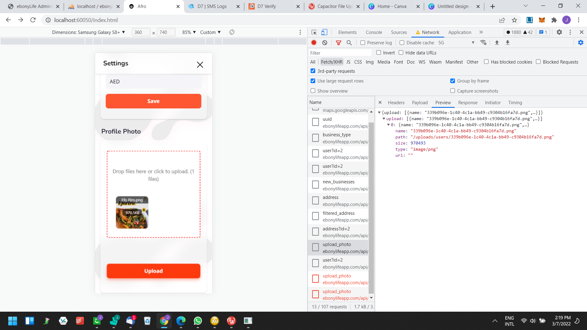 My upload path and everything is properly setup and my api is on a https site.