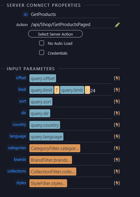 It loads a list of products (filtered on category, style, etc) which is shown in a repeat grid.
