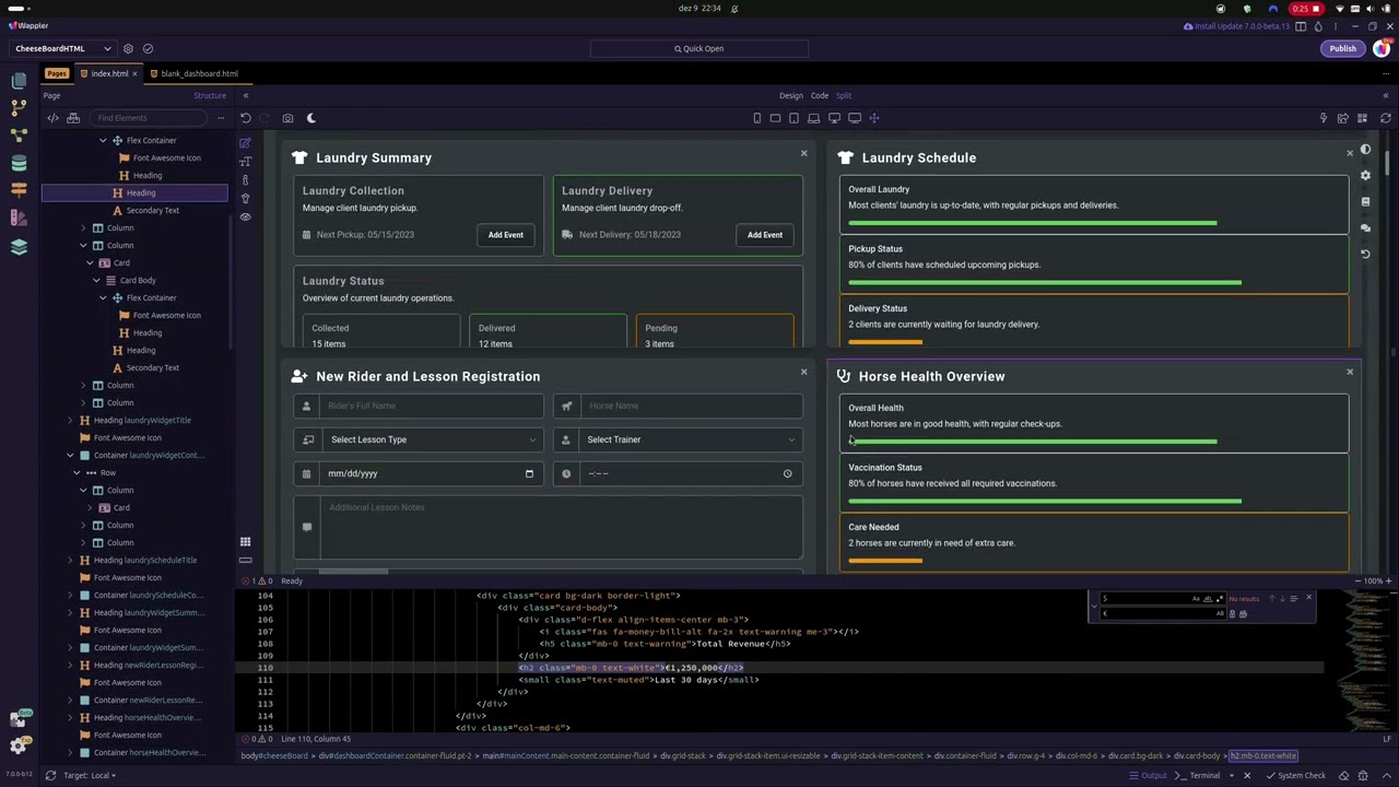 I've not locked it in to anything so can stand alone on HTML, PHP, and Node. Literally half a dozen scripts (split them up for various functions so easy to maintain), a few CSS files (for the same reasons), and the HTML is all bog-standard. The rest is all Bootstrap using best practices for layout.