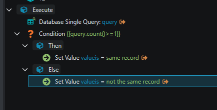 Good idea on the single query. I never thought of that. The problem I would have is writing the condition. As far as I know the expression builder is not available in the server connect action editor. And I'm not very knowledgable in coding.