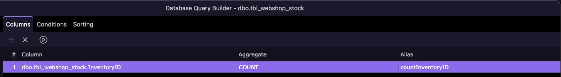 I use COUNT under Aggregate in the DB Query builder. To get a count where a specific condition is met, add the condition in the Conditions tab to filter data.