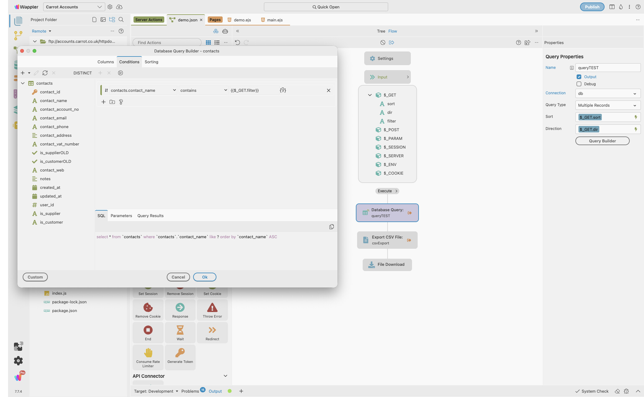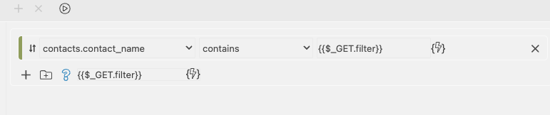 It works fine if I hard code the condition (eg contact_name contains “test”) but as soon as I make the condition based on the $GET_filter I get a error 500 when I click the download button.