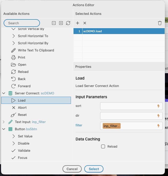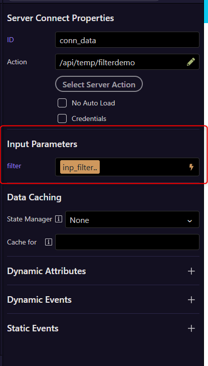 Did you remember to bind your filter variable in your input field in your server connect action, forgetting to do that would result in a 500 error as $_GET.filter would be undefined.