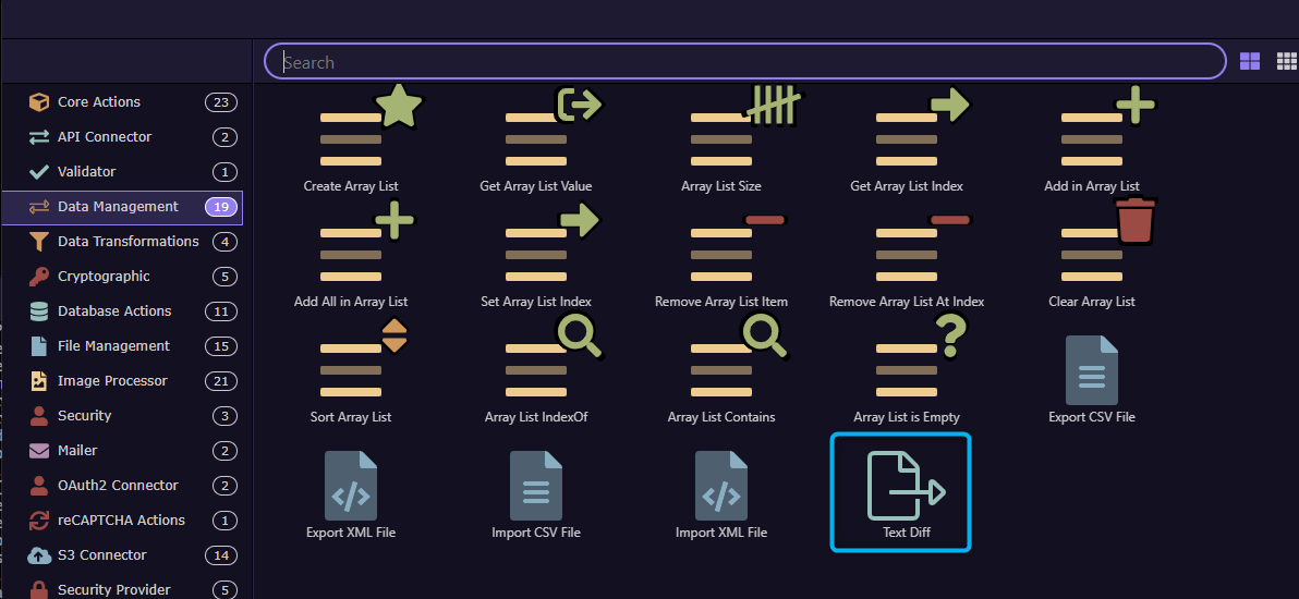 This extension takes two differing texts and compares the two for differences identifying the changes, words added, words removed and gives a score (1-100 ) indicating the amount of change.