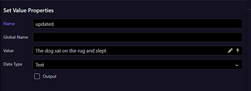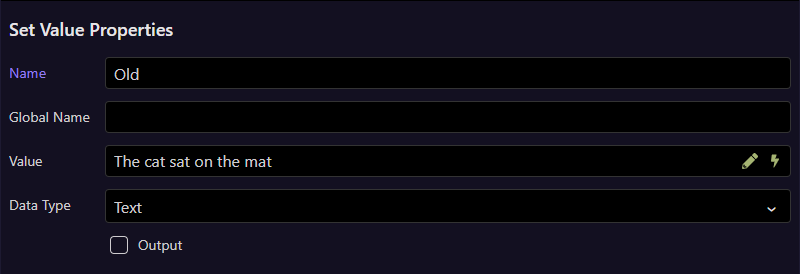 In this simple case i compare two short pieces of text which are defined in set value stages.