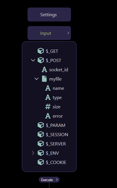 Here we upload an image from app connect using a standard file upload as $_POST.myfile.