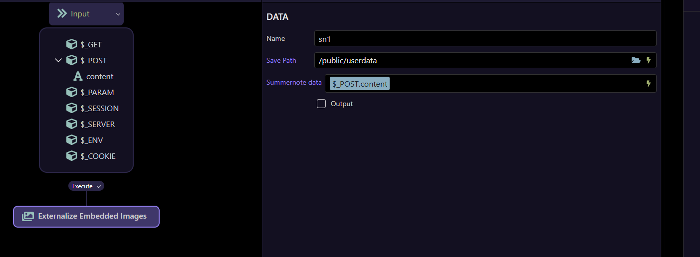The code is then rewritten to replace the base64 code with a simple<img> links referencing the newly saved image. It even adds the 'note-file-clip' class automatically added by the upload action for summernote compatibility.