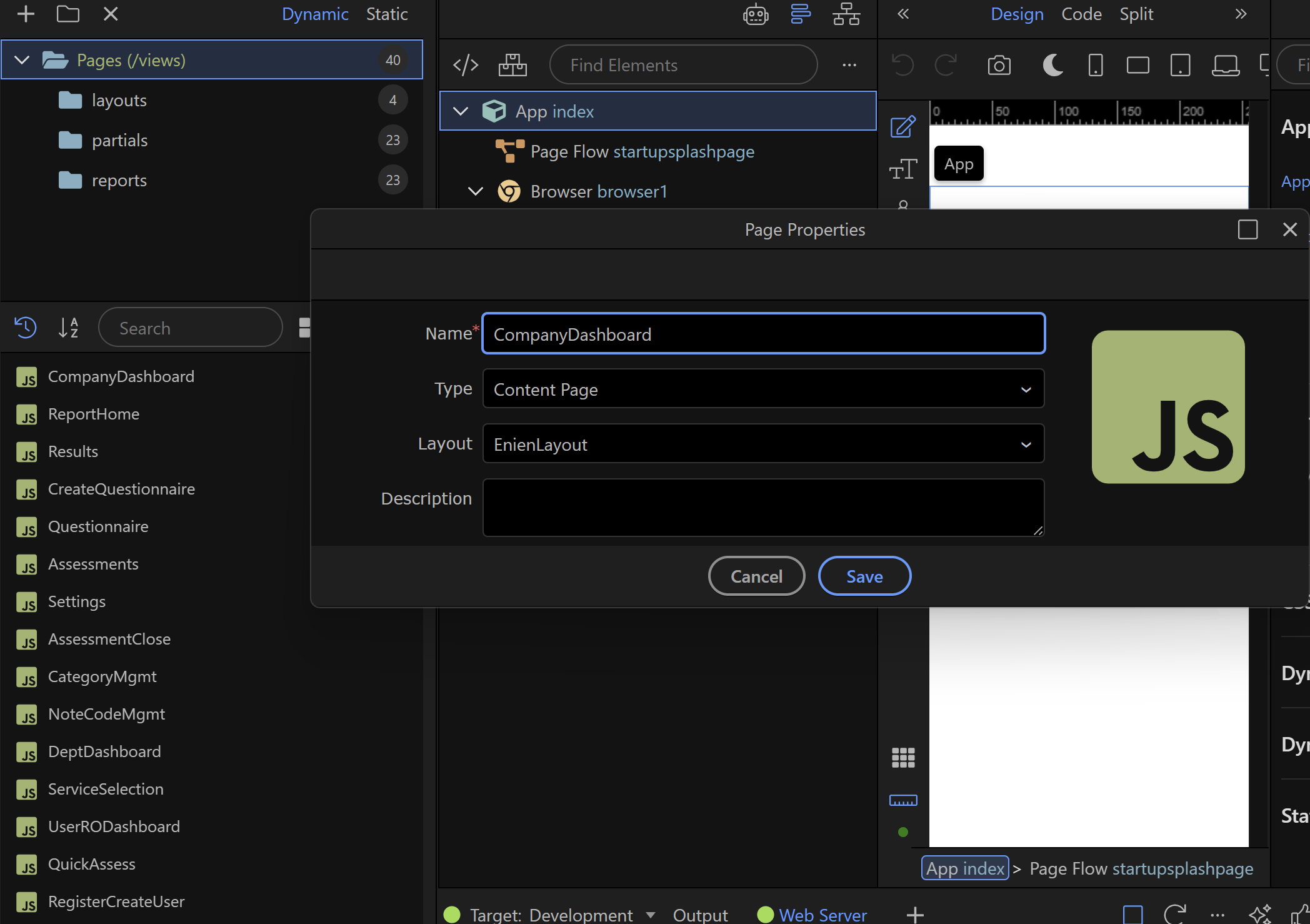 Not sure what to screenshot but I’ve taken an image of the pages view structure , some of teh pages and the specific companydashboard page