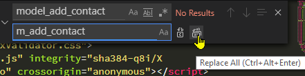 Then I realise I want to change the id of an item involved - in this case, the id of the modal to be closed upon success (from model_add_contact to m_add_contact). So I make the change to the modal, but then I need to change the action too.