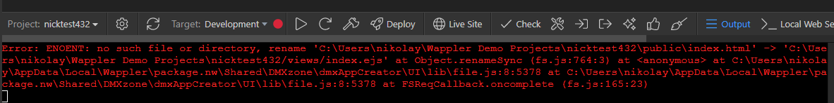 Also, on Development there is a error with some module. It happens sometimes. Usually, I fix it by updating node modules. Maybe these both errors are connected.