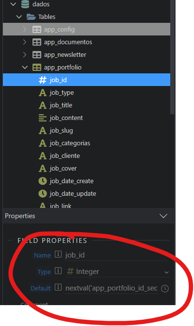 But this behavior is strange since I always do it the same way when I create a table. The other tables of the bank the autoincrement primary key is called ID and in the app_portfolio table I gave the name of job_id. This is the only difference.