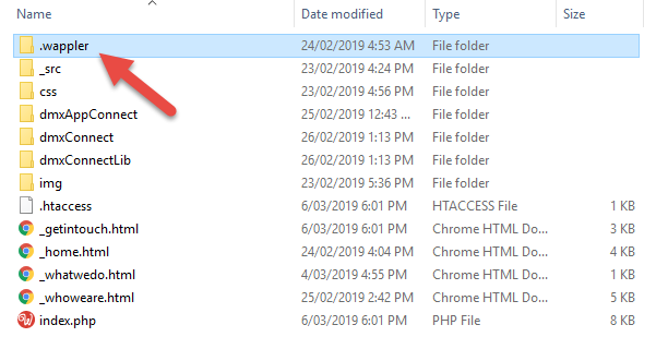 Here you will see all of the files that are required including the files contained in the .wappler folder. This is most important when the end developers use Wappler, because it contains all of the information that Wappler requires.