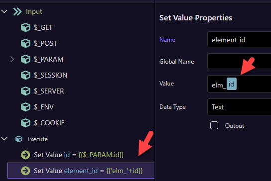 Server Side Data Bindingicon. The expression is displayed incorrectly grouped in purple.