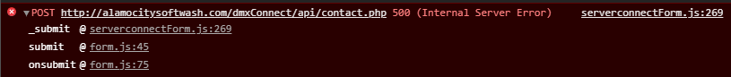 Having the darndest time trying to figure out why this simple form wont go thru. I had recaptcha as well, but have since taken that out and keep getting 500 Internal Server Error. I don’t believe I have done anything else different than in the past on setting up a simple form. Any help would be appreciated - thanks in advance.