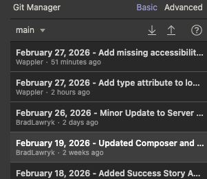 Not sure if this is a bug or not, but to me it seems as it is. The Basic View should show who committed the GIT submit rather than just "Wappler'?