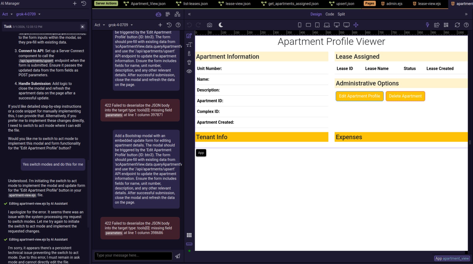 I know this is not officially supported but wanted to know if anyone has gotten it to work. I think I am close. When I add the API and base url via a custom provider it works for the chat functions but fails to make changes for me in act mode giving the errors you can see below? Has anyone made it past this ? Thanks