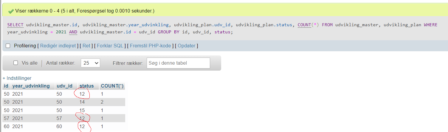 In the first query, the result is technically incorrect since udv_id = 50 is not the only status 12 value.