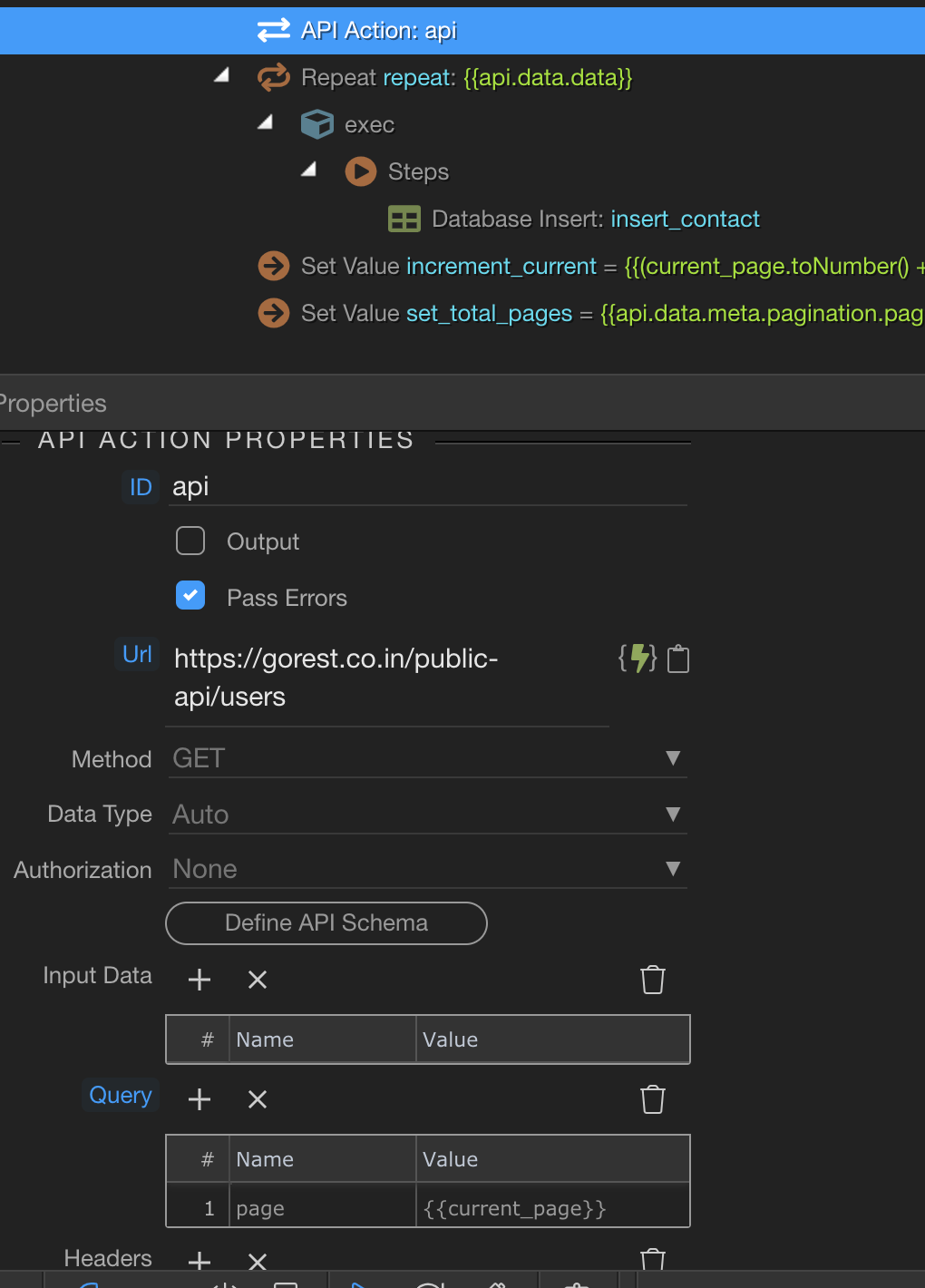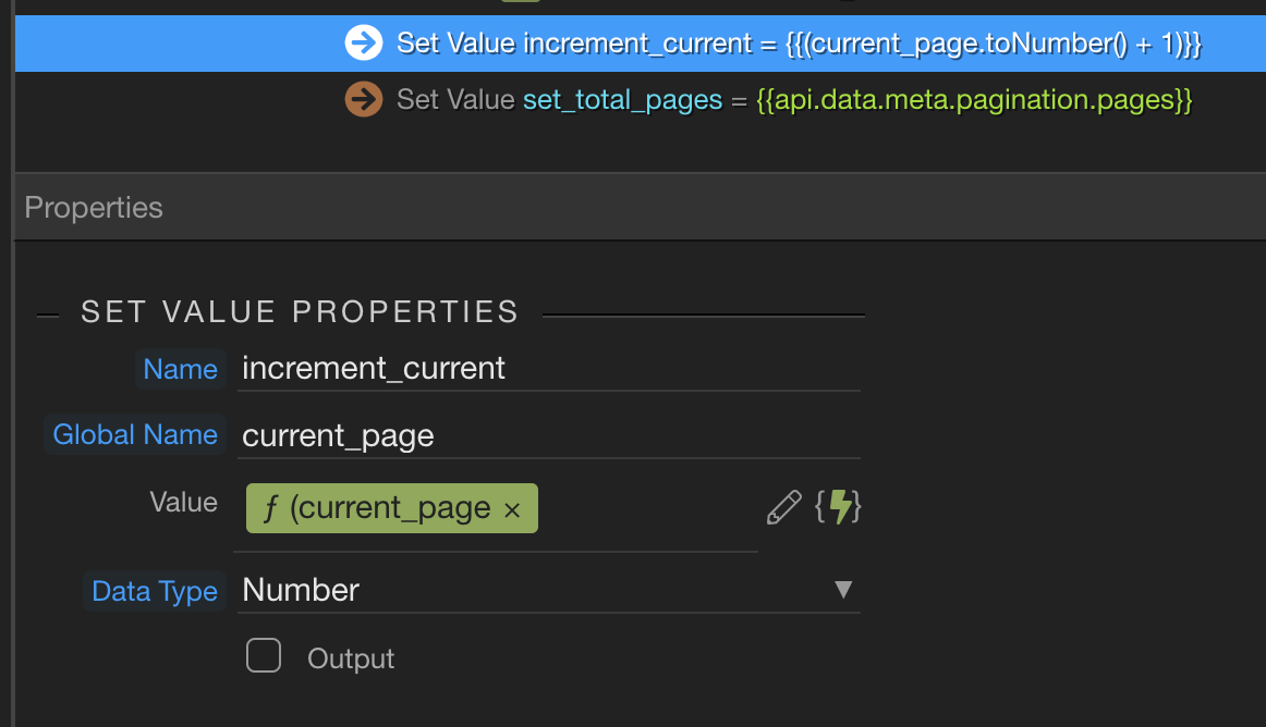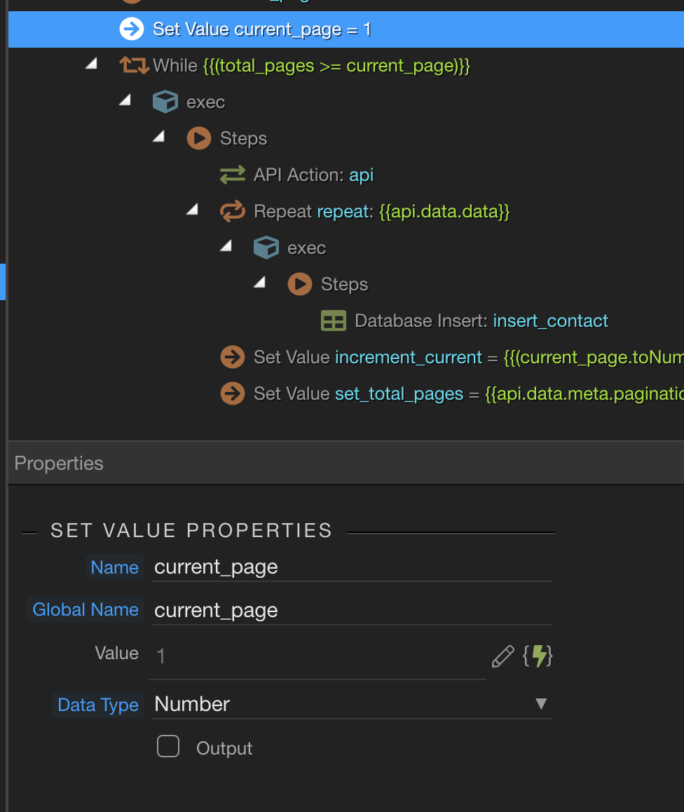 I have a Server API Action that queries an API end point which contains around 7000 records. I can use a count condition to get say ‘50’ records and another condition to GET page 1.