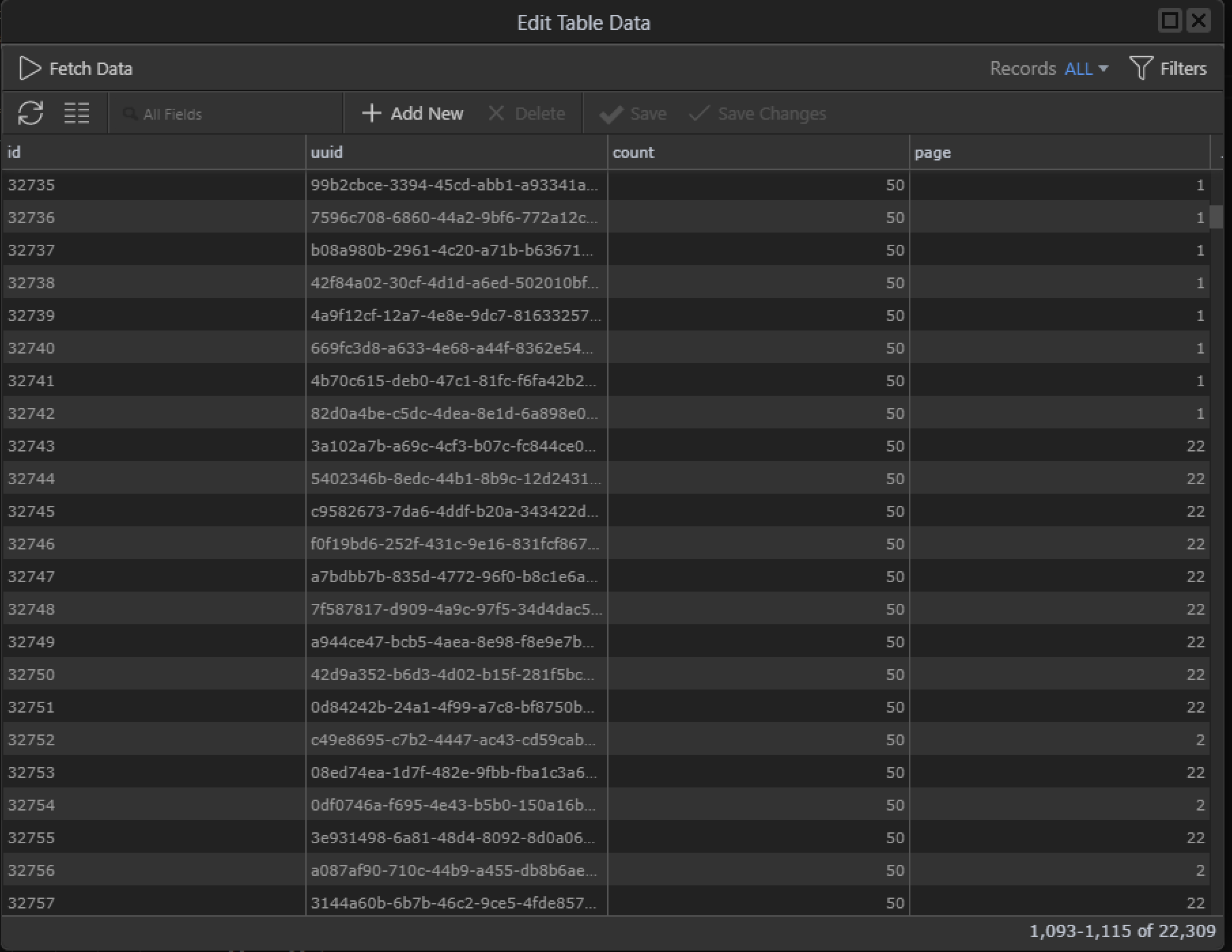 Cannot figure out why the QueryDB which is selecting where table uuid = repeats uuid and the condition is still inserting a record on a match and why when it gets to page 20 it randomly goes back to earlier pages.