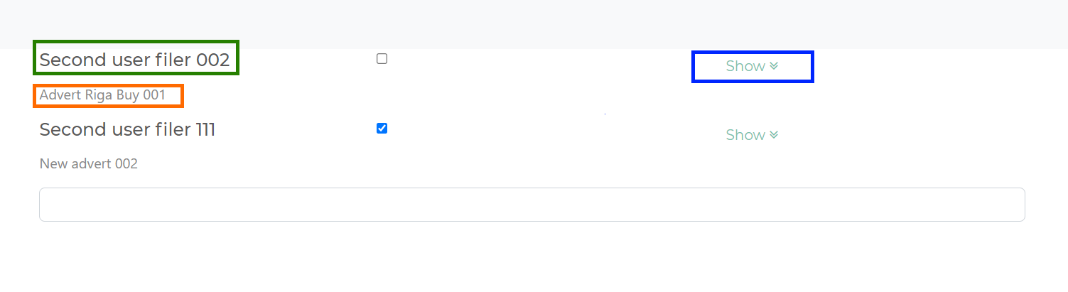 ) Those orange entries might be a lot. I would like to have a button (blue) to show/hide that specific nested repeats (orange) for repeat (green).
