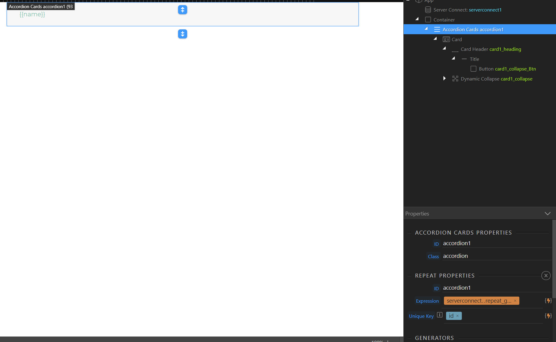 After I found similair topic Dynamic Accordion Usage in general I got the idea but now I have question: How it’s possible to retrieve unique ID from Server connect action and add it as a unique value to the cardeon card?