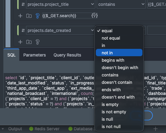Here is a screen shot of the conditions tab for a paged query. The ui does not provide the option for a conditional condition, say: date_created >= $_GET.start_date && date_created <= $_GET.end_date