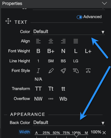 Select it in your Wappler’s design view and then in the properties panel at the right you should be able to select the background color and text color.