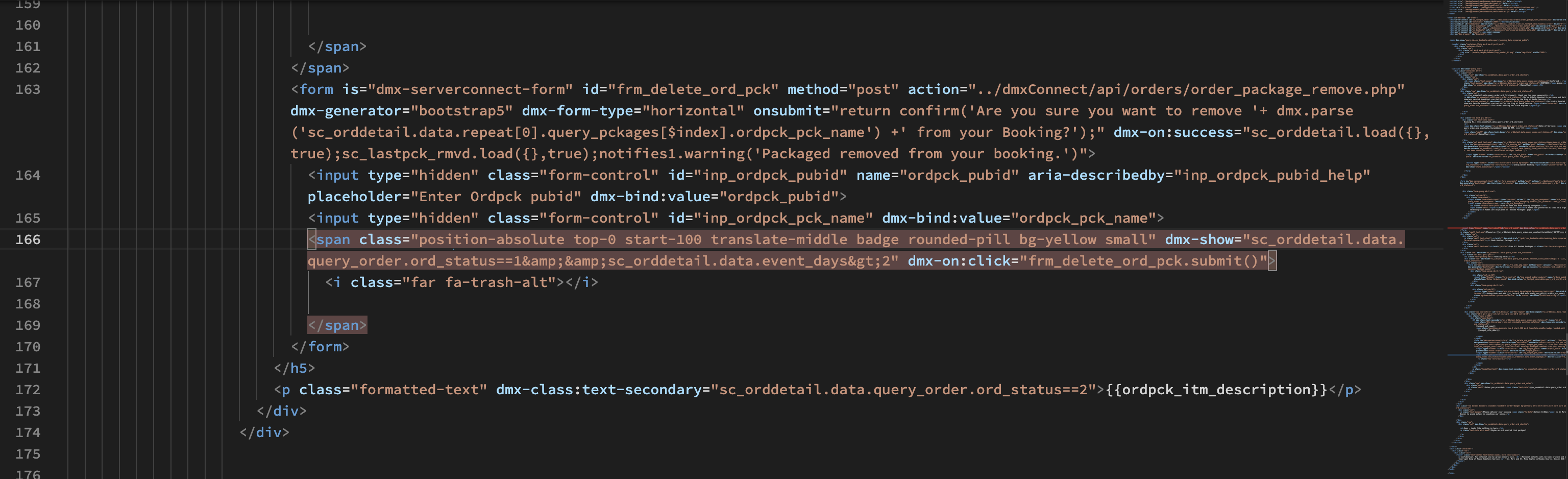 <span class="position-absolute top-0 start-100 translate-middle badge rounded-pill bg-dark small" dmx-on:click="var_ordpck_pck_name.setValue(ordpck_pck_name);frm_delete_ord_pck.submit()">