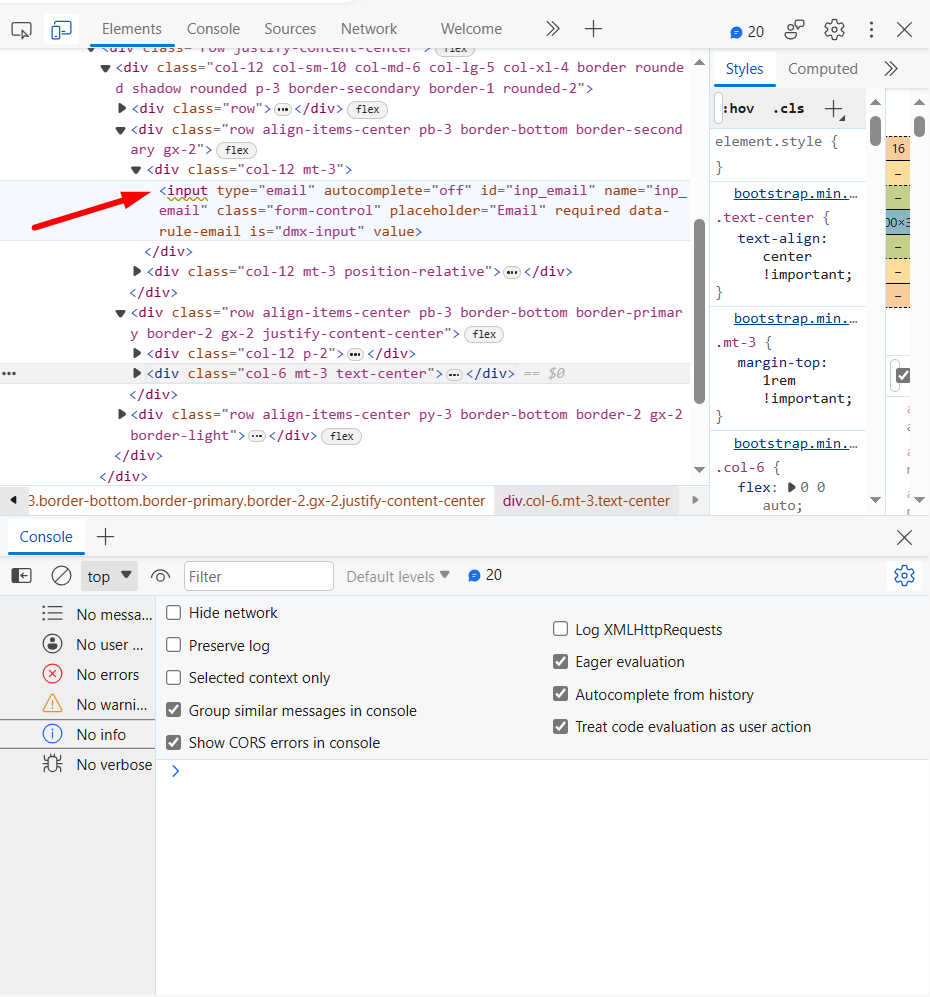 Can you share a screenshot of your browser running the page (without to submit the form)?