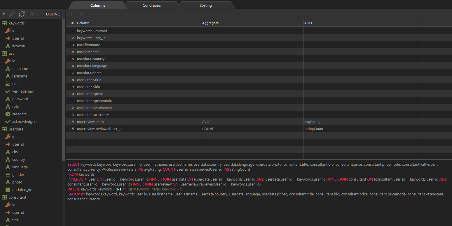 That’s my query with aggregates and aliases at the bottom.