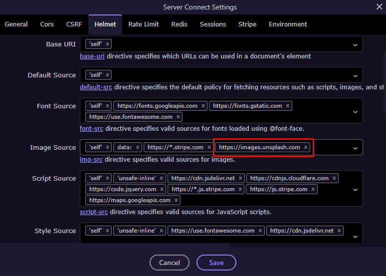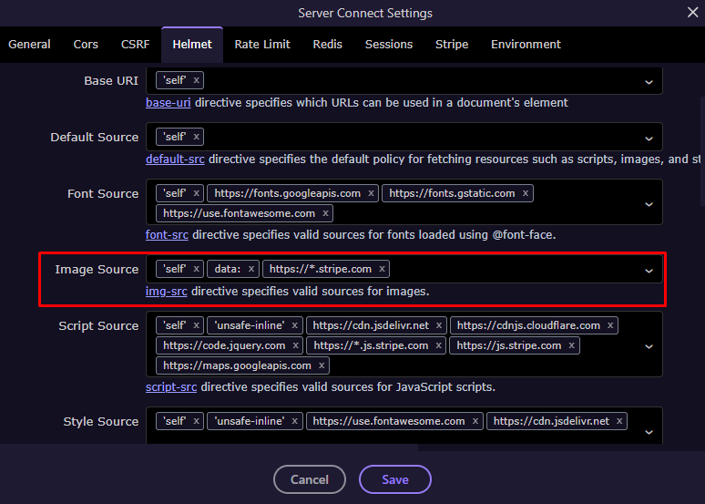 Server Connect Settings (Helmet Middleware)