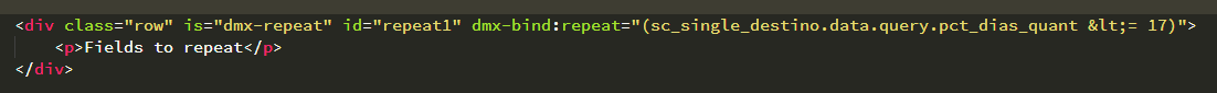 The number 17 is the maximum number of times the content will be repeated. The sc_single_destino.data.query.pct_dias_quant field controls this. There are records that have only 10 times, others 15 but others have 17. That’s why dmx-bind:repeat=(here it has to be dynamic)