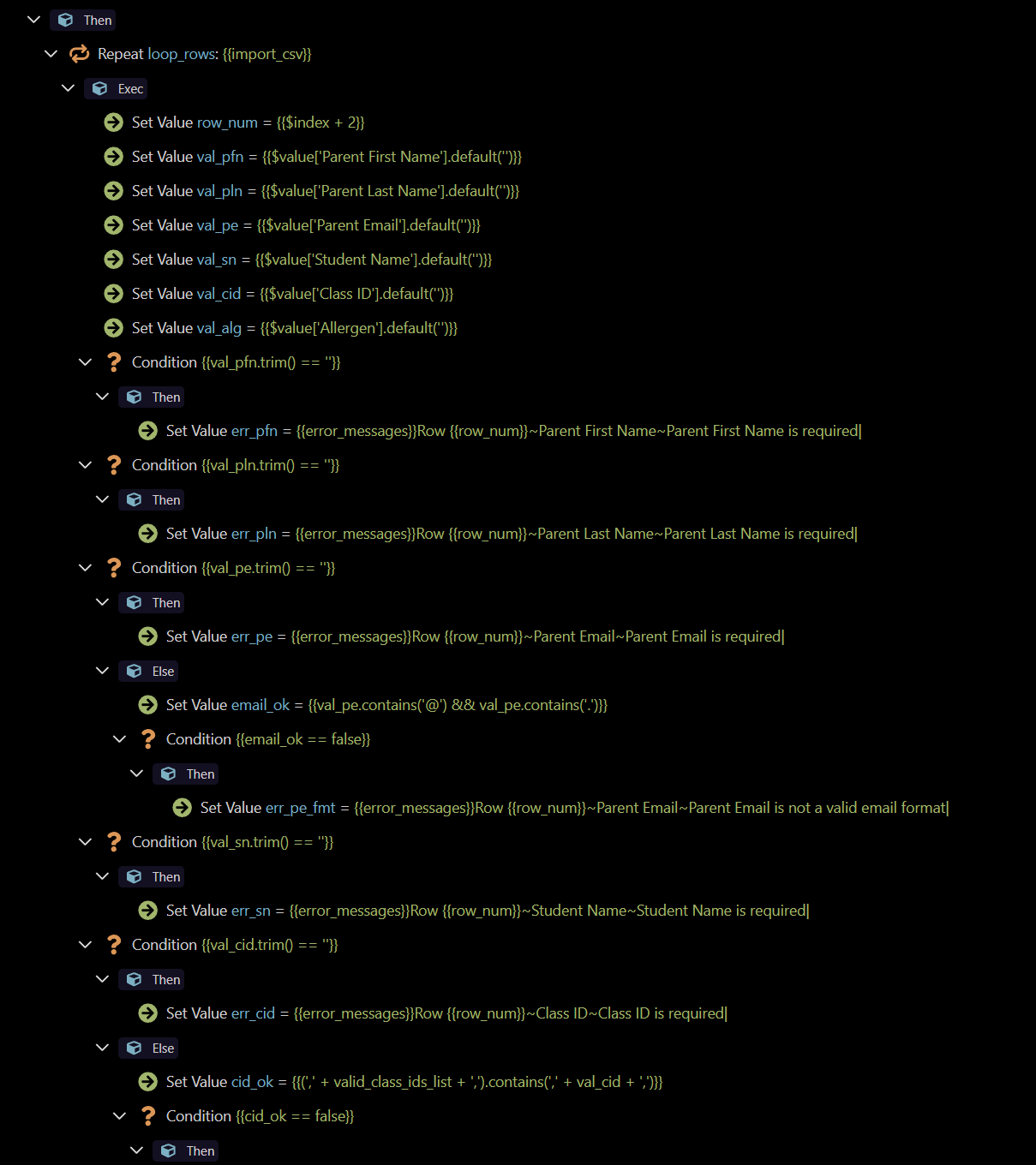 but that the question is… how do I get the error on the Import CSV step