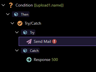 Because if I do say.. use a Send Mail as example and its not correct … see sample .. I will get a Response 500 in the catch..