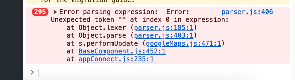 parser.js:406 Error parsing expression: Error: Unexpected token "" at index 0 in expression: