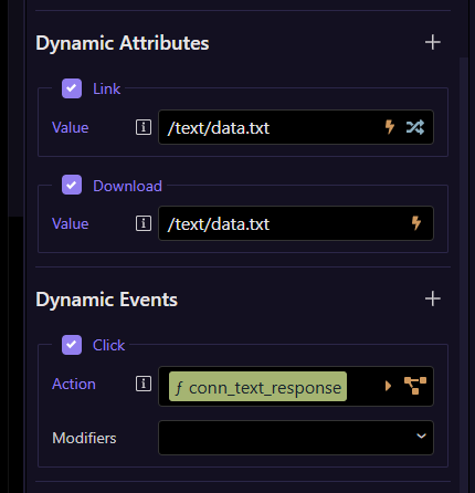 so i have a serverconnect->load attached to the click event which creates the file to download and also download action set