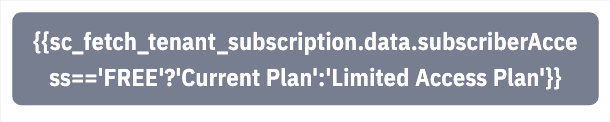 {{sc_fetch_tenant_subscription.data.subscriberAccess=='FREE'?'Current Plan':'Limited Access Plan'}}