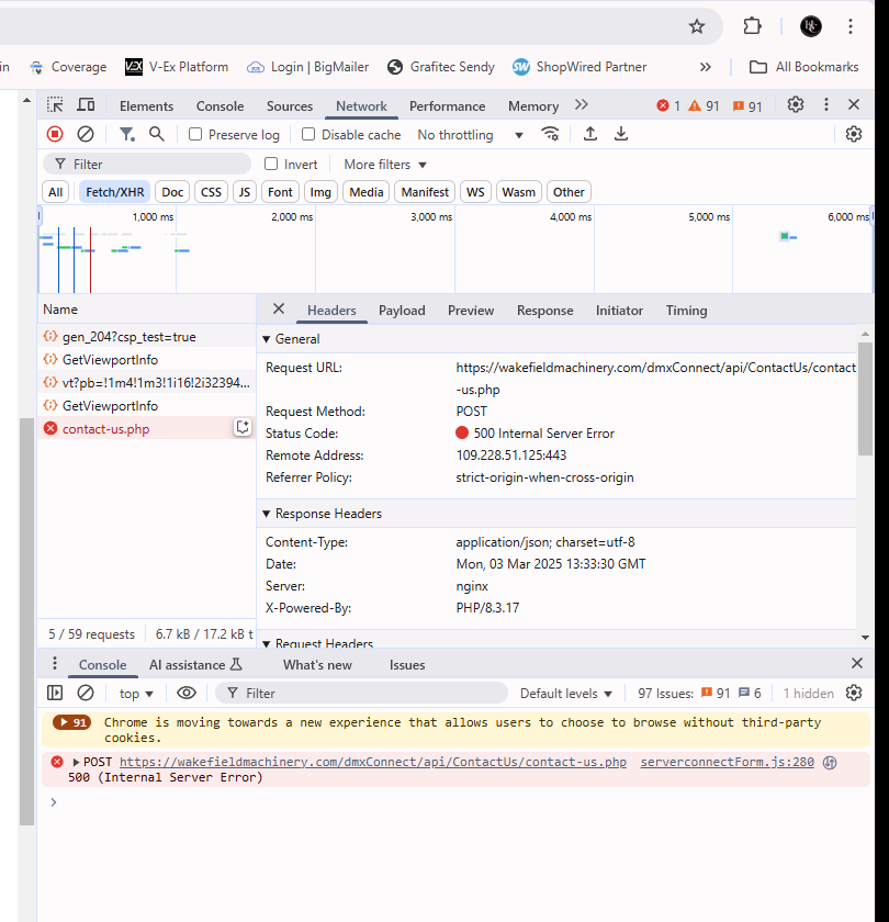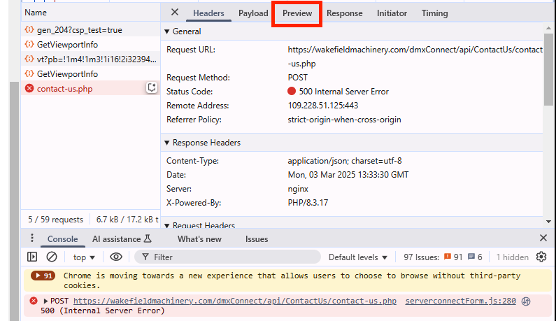 When I look at the form online using the inspect facility it shows an error with: