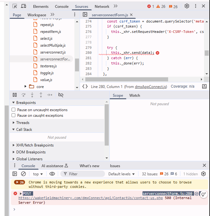 serverconnectForm.js but his file is not present anywhere in my website.